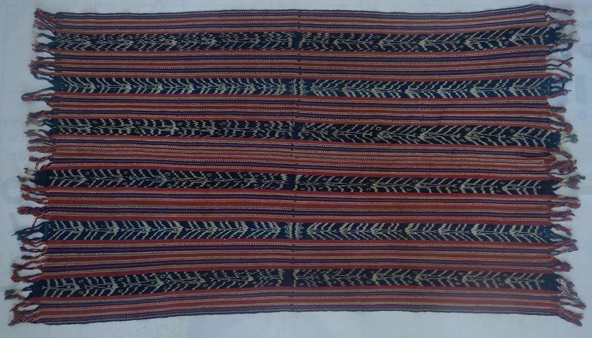 By admin / 11/20/2023 TA0095 Name of Tais: Beti Naek Ethnicity Atoin Meto District and Village Oe-cusse Technique Futus Size 200×87 cm Material Yarn: Handspun CottonDye: Natural and Synthetic Color Motif Fish
