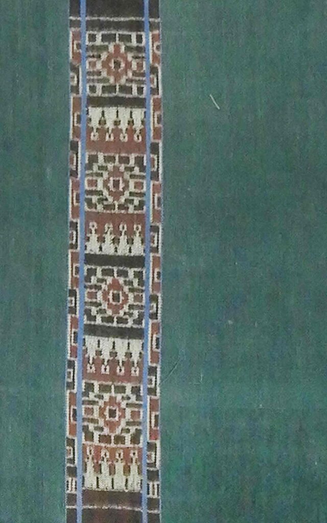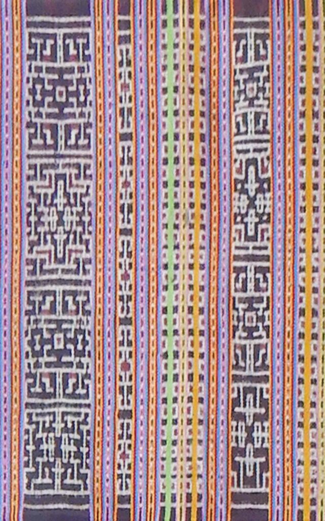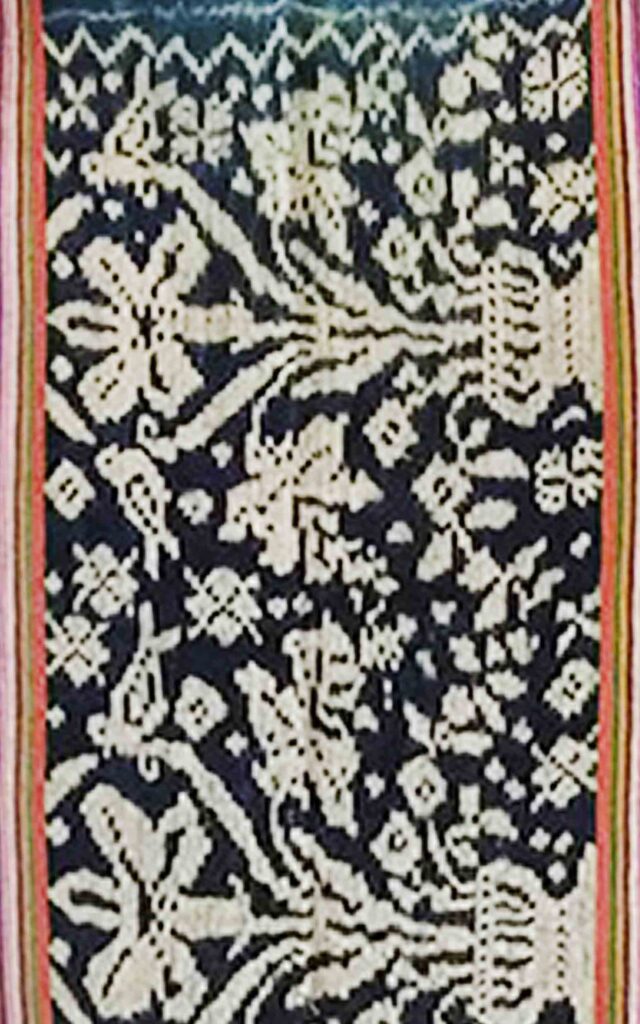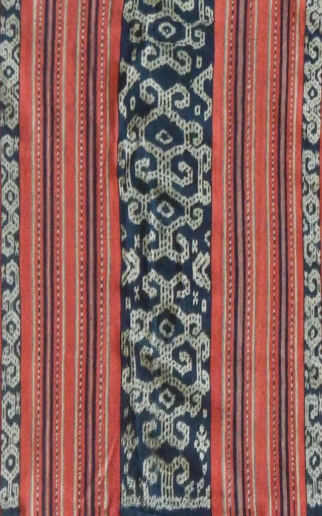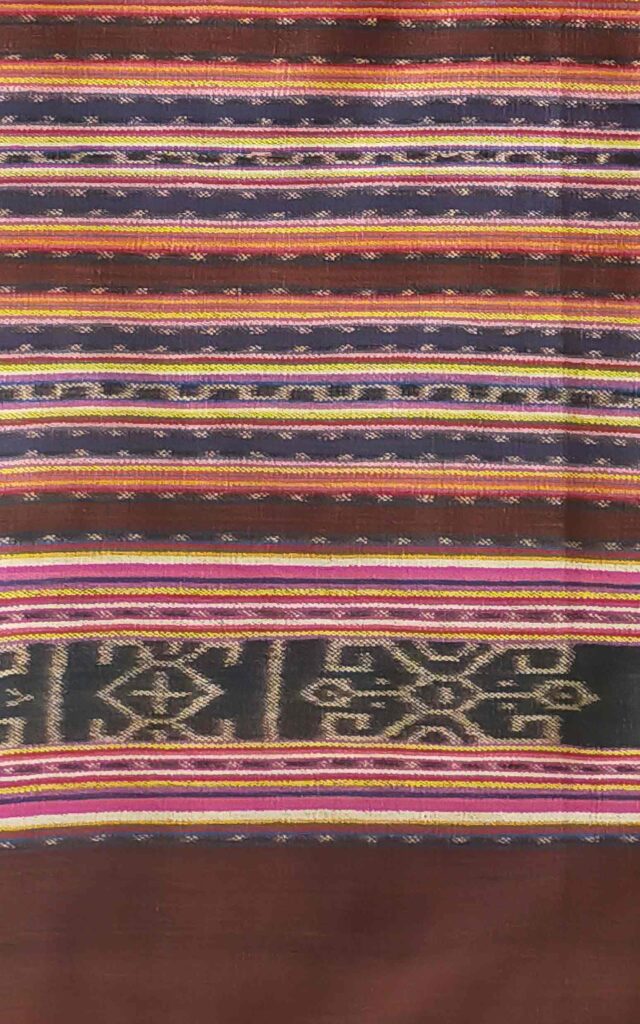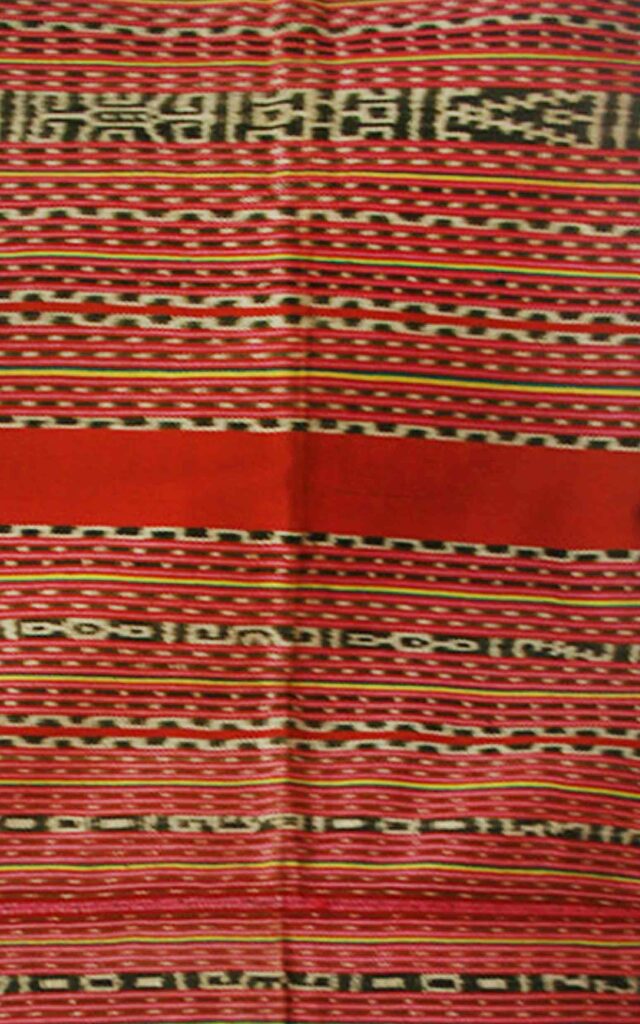 TA0025 Name of Tais: Beti Naek, Beti Fut Lula Naek Ethnicity Atoin Meto District and Village Oe-Cusse, Padiae Technique Futus Size 197×113 cm Material Yarn: Commercial Cotton Dye: Synthetic Color Motif Flower Atoin Meto Oe-Cusse, Padiae Futus 197×113 cm Yarn: Commercial Cotton Dye: Synthetic Color Flower