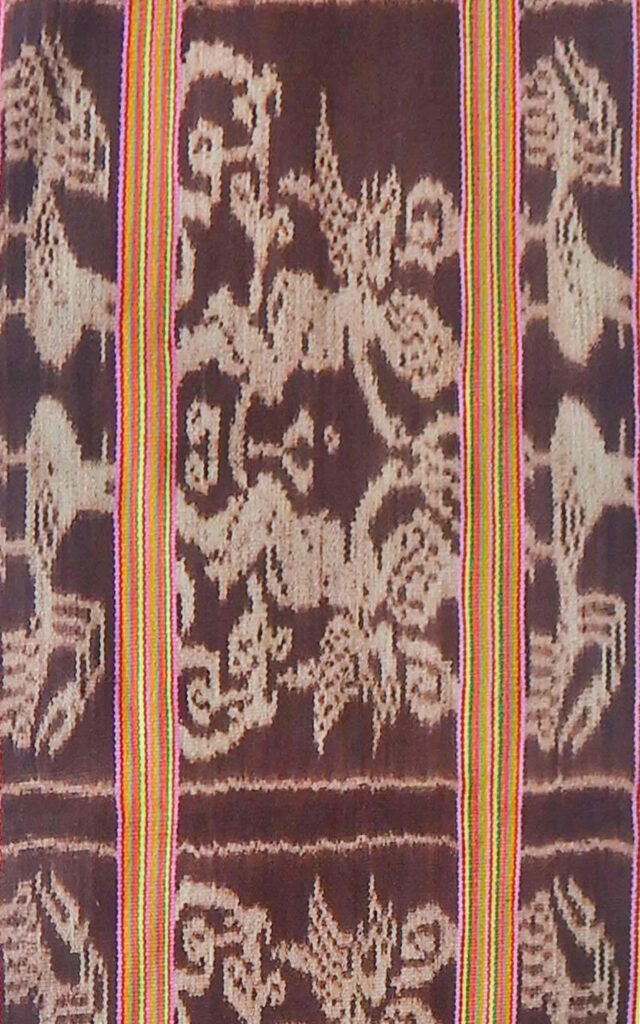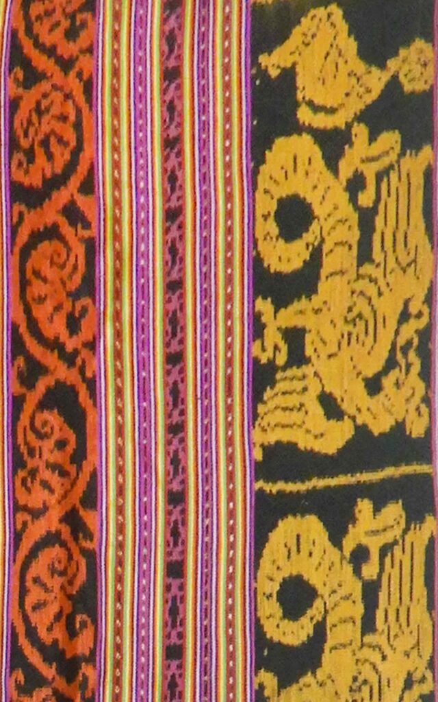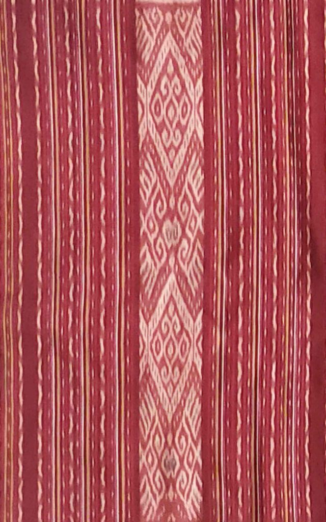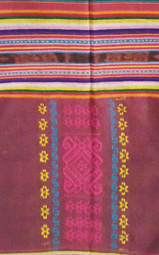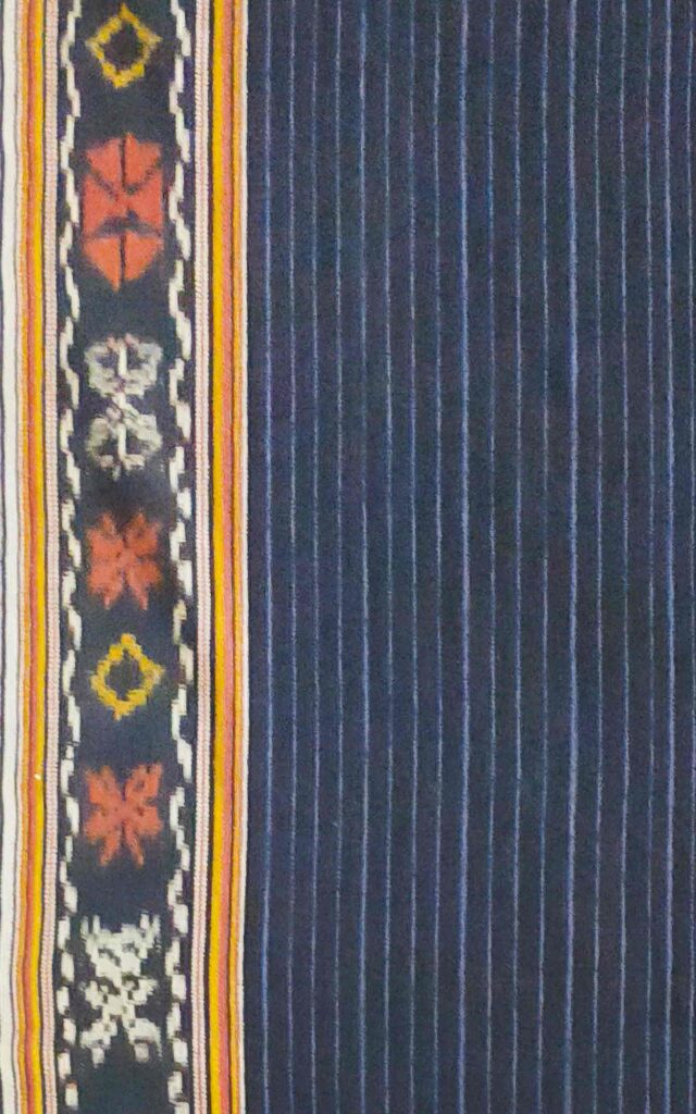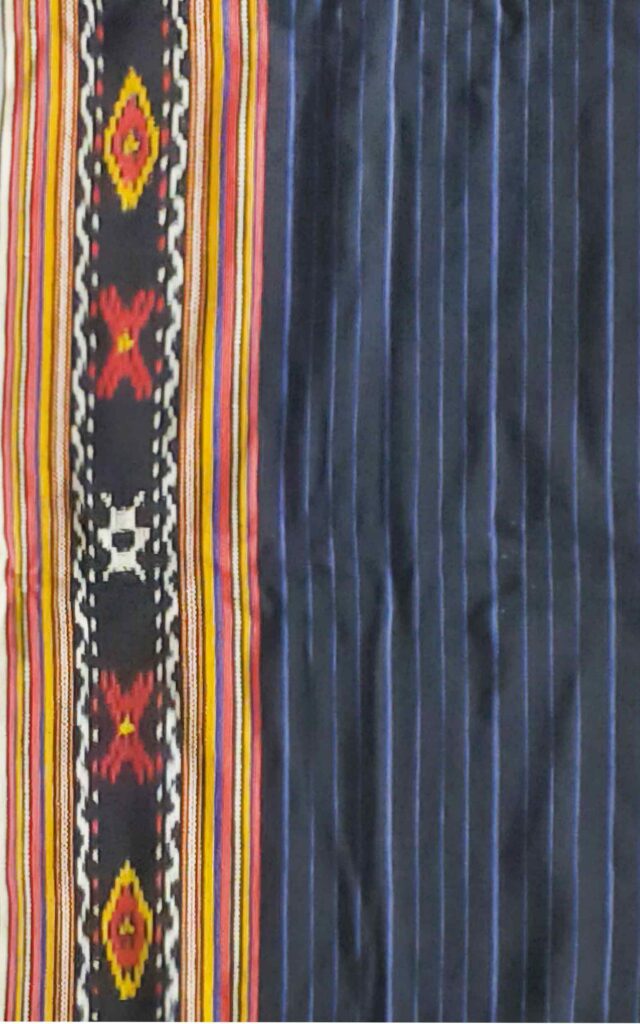 TA0015 Name of Tais: Tais Mane Nochi Ethnicity Kemak District and Village Bobonaro, Marobo Technique Size 172×35 cm Material Yarn: Commercial Cotton Dye: Natural and Synthetic Color Motif Natural and Synthetic Kemak Bobonaro, Marobo 172×35 cm Yarn: Commercial Cotton Dye: Natural and Synthetic Color Natural and Synthetic